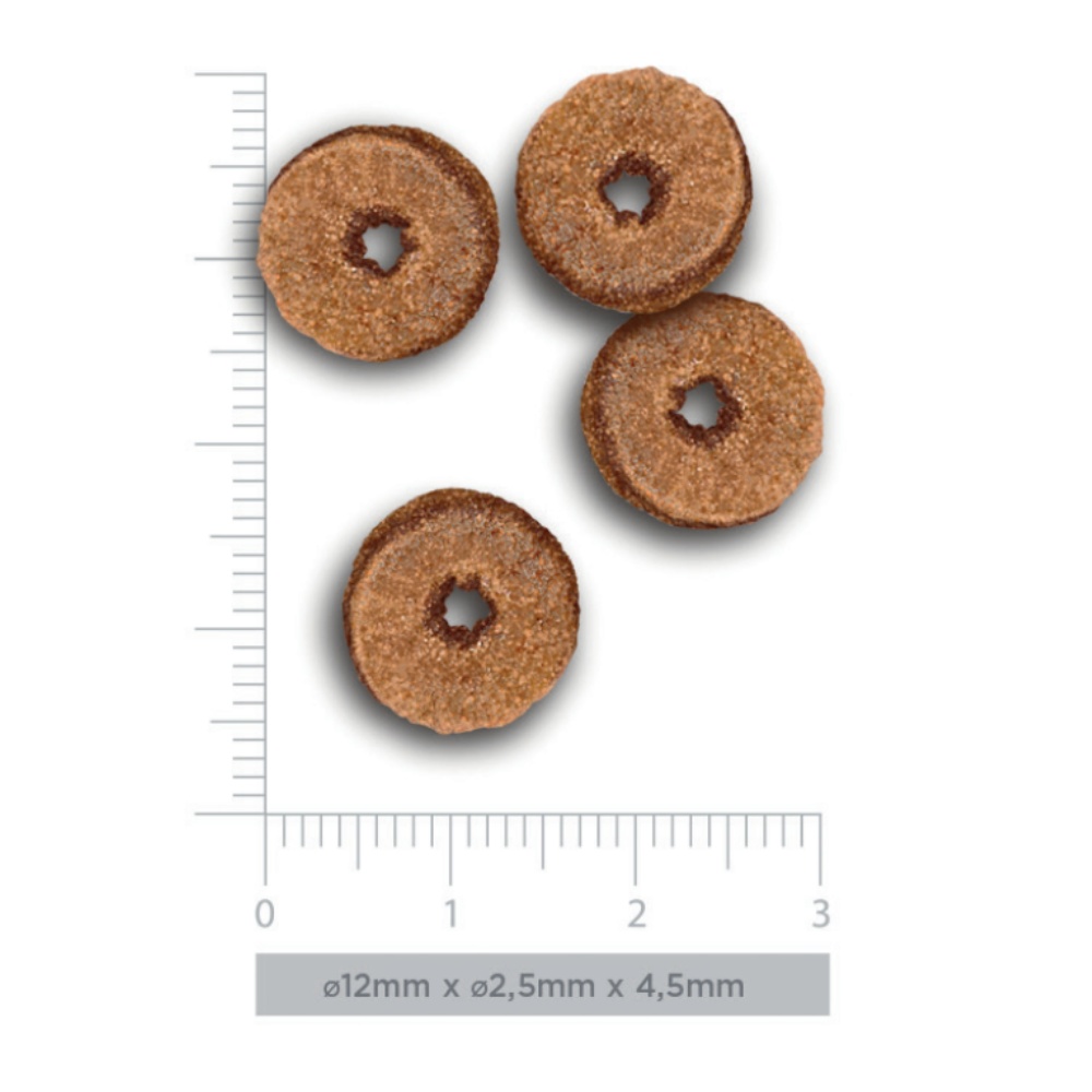 Analytické složky: hrubý protein 32,00 %, hrubý tuk 18,00 %, omega 3 mastné kyseliny 0,50 %, omega 6 mastné kyseliny 2,20 %, hrubá vláknina 2,75 %, hrubý popel 8,00 %, vápník 1,10 %, fosfor 0,90 %, metabolizovatelná energie: 3940 kcal / kg.