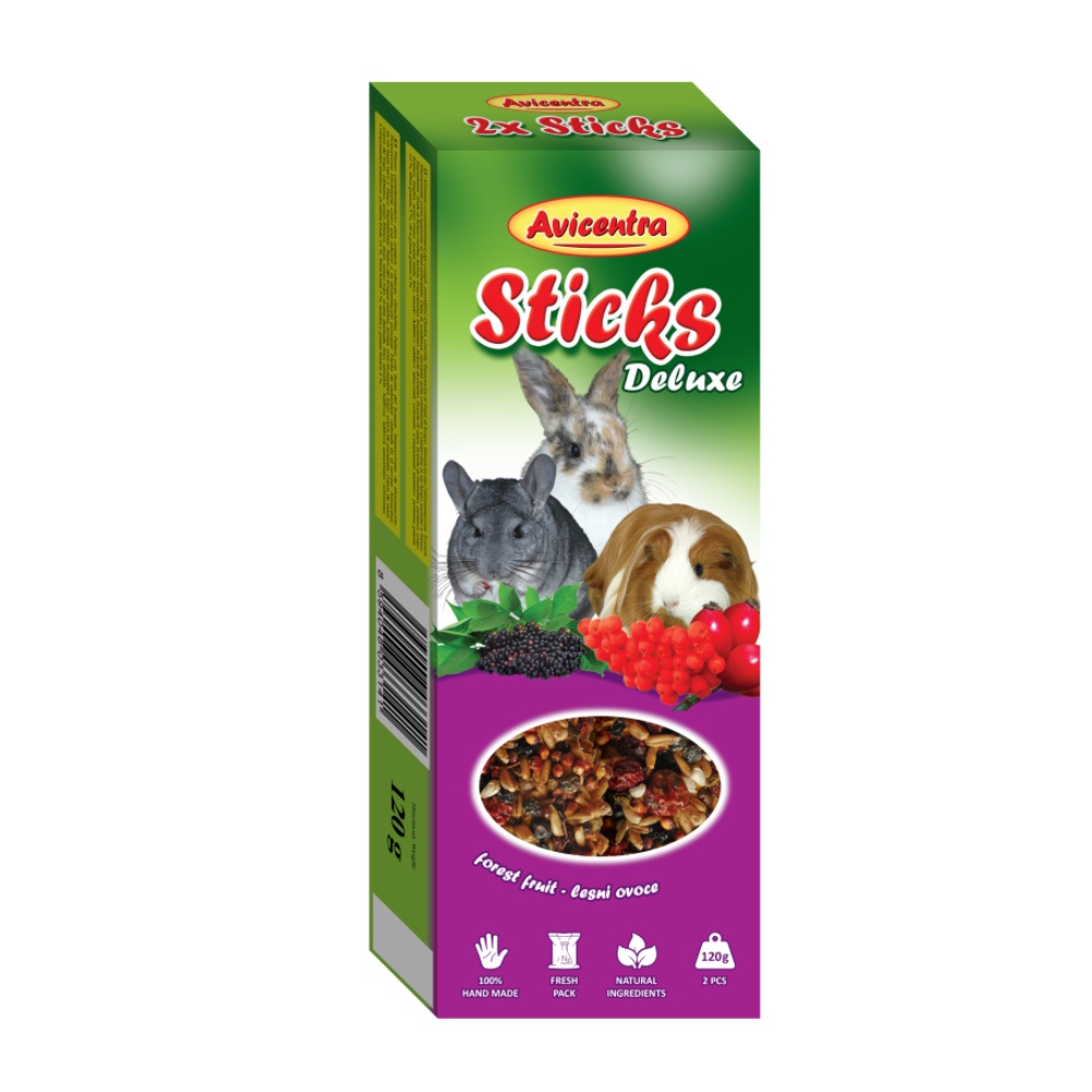 Avicentra Deluxe Tyčinka Králík, morče, činčila lesní ovoce (2 ks)
