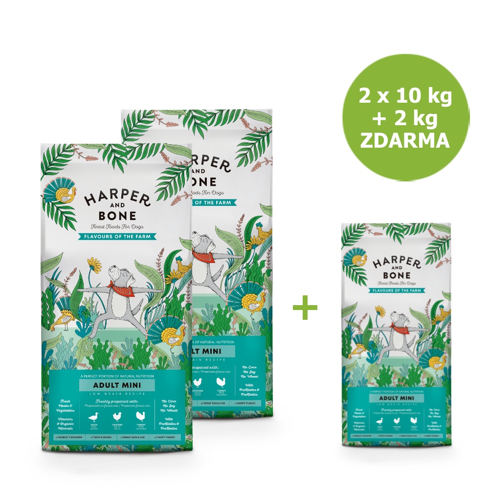 Harper and Bone Dog Adult Mini příchutě farmy AKCE 2 x 10 kg + 2 kg ZDARMA
