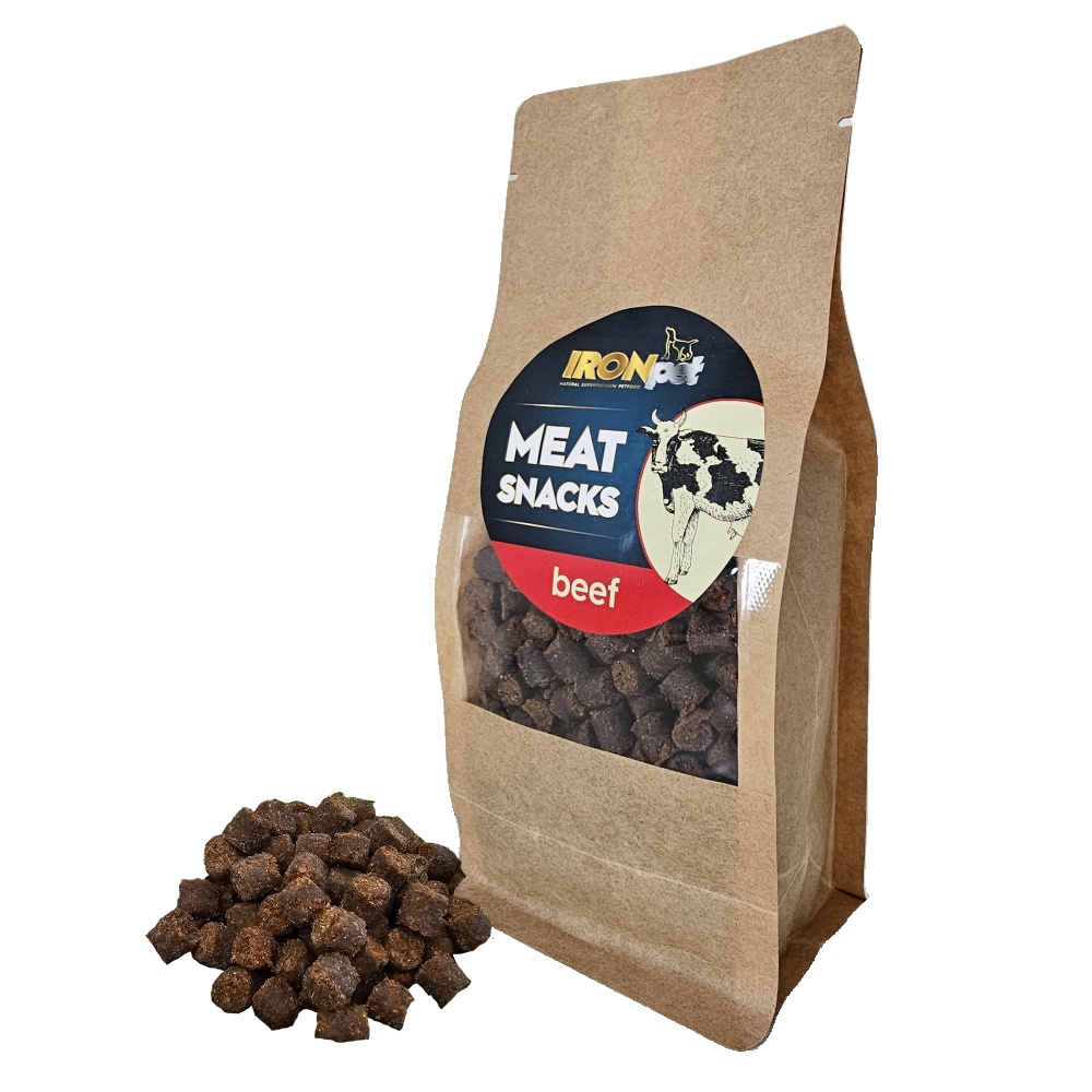 Tréninkové masové pamlsky IRONpet meat snacks s hovězí masem.