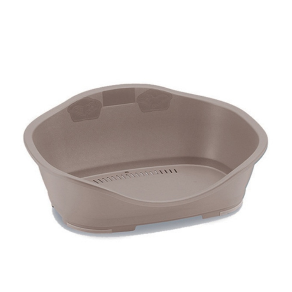 Vysoce kvalitní plastový pelíšek italské výroby je skvělým místem pro odpočinek vašeho mazlíčka. S detailním zpracováním a vysokou odolností je ideální pro každodenní použití. Díky perforovanému dnu je prodyšný a umožňuje cirkulaci vzduchu. Navíc je snadno čistitelný a omývatelný, což usnadňuje jeho údržbu. Protiskluzová vrstva na spodní straně zajišťuje stabilitu, takže se nemusíte bát posouvání pelíšku na kluzkých podlahách.  Když doplníte pelíšek měkkou dekou nebo polštářem, váš mazlíček získá úžasně pohodlné místo k odpočinku.  Velikost: 5 Vnější rozměry: 96 x 68 x 37,5 cm Spodní rozměr: 76 cm x 50 cm Barva: světle hnědá