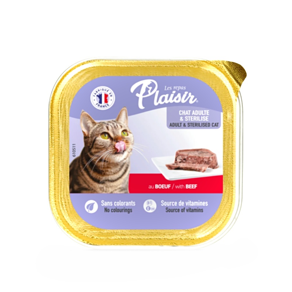 Kompletní mokré krmivo pro dospělé kočky. Chutná vanička s hovězím. Složení: maso a výrobky živočišného původu 58 %, hovězí maso 4 %, minerální látky, cukry. Nutriční hodnoty: hrubý protein 10 %, hrubá vláknina 0,8 %, hrubý tuk 5 %, hrubý popel 2,5 %, vlhkost 81 %.