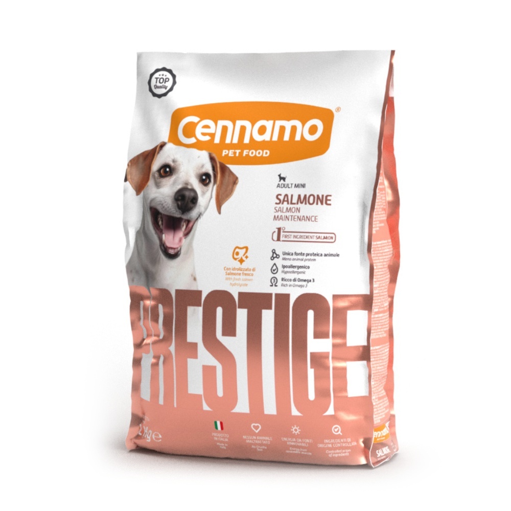 Prestige Dog Adult Maintenance Mini Losos s rýží a tapiokou je kompletní a vyvážené vysoce kvalitní krmivo pro dospělé psy malých plemen, které pomáhá udržovat jejich zdraví, vitalitu a optimální kondici. Receptura je připravena s lososem jako jediným zdrojem živočišných bílkovin, díky čemuž je krmivo velmi chutné a dobře stravitelné i pro citlivější jedince.