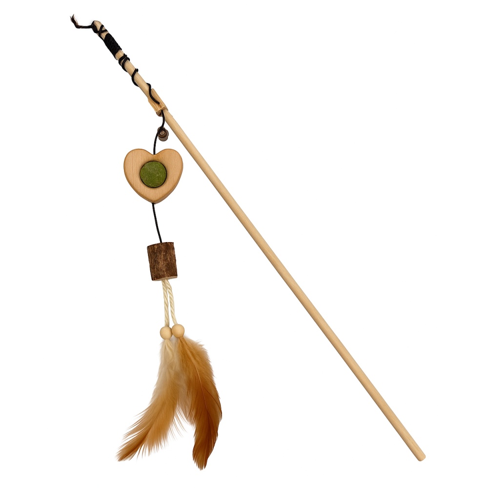 Dopřejte své kočce hodiny zábavy a pohybu s touto stylovou vábničkou. Hračka je tvořena pevným, pohodlně uchopitelným prutem a odolnou šňůrkou, na jejímž konci je dřevěná hračka s ukrytým catnipem.