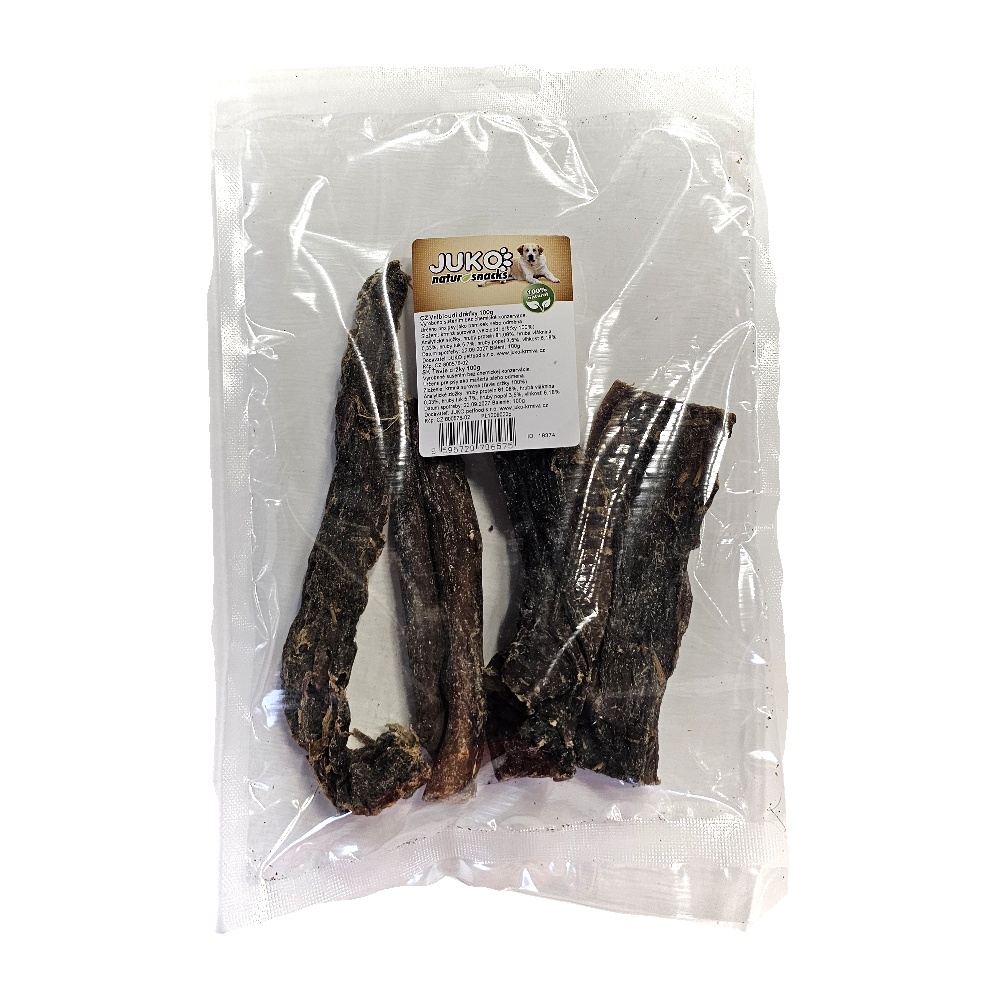 Velbloudí dršťky jsou vhodný pamlsek pro psy, kteří trpí alergií. Čistí zuby a posilují žvýkací svalstvo. Jsou plné vitamínů a stopových prvků. - pro všechna plemena psů - 100 % přírodní pamlsek - bez obsahu barviv, dochucovadel a konzervantů Složení: 100 % velbloudí dršťky. Analytické složky: hrubý protein 81,08%, hrubá vláknina 0,33%, hrubý tuk 5,7%, hrubý popel 3,5%, vlhkost 6,18%.